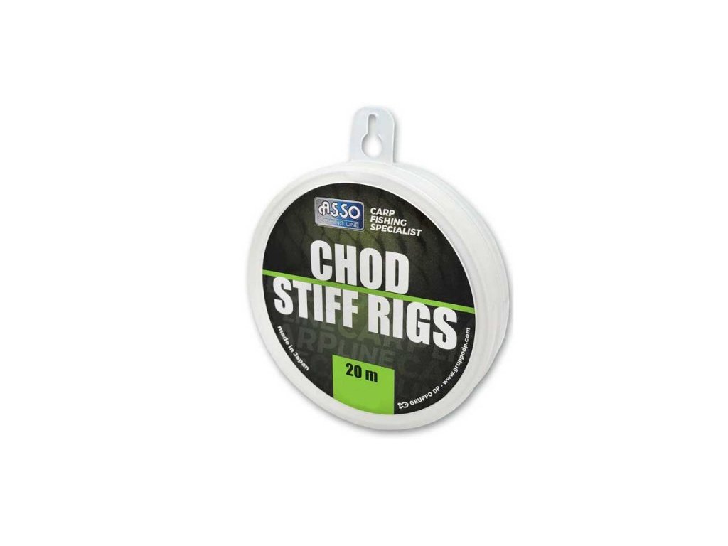 Asso Chod Stiff rig 0,40mm 20m : Tento Asso Chod/Stiff Rigs je tuhý náväzcový materiál s množstvom "pamäťového efektu", vďaka čomu sa dá ľahko tvarovať do požadovaného tvaru a ohýbať sa v chod rigu. Je veľmi odolný proti oderu, zachováva si vysokú pevnosť v uzle a pod vodou je prakticky neviditeľný.