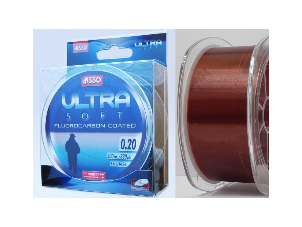 Asso Ultra Soft 300m 0,24mm hnedá/medená - Asso Ultra soft je jemný ale zároveň silný monofil. Tento rybársky vlasec má skvelé vlastnosti, vďaka tomu, že je potiahnutý flourocarbonom. Má nízku prieťažnosť a tak dáva rybárovi okamžitú kontrolu nad zábermi a zaručuje spoľahlivý zásek. Je zlatistej farby, v návine 300m. Vyrába sa v rôznych priemeroch.