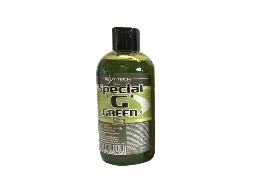 Bait-Tech Tekutý Posilovač Deluxe G Green 250ml - Rad tekutých posilňovačov od Bait-Tech v rôznych príchutiach a na rôzne použitie. Je vhodná do method mixov, spodových mixov a na ľahké dipovanie peliet i boilies.Možnosť využitia je však nekonečná. Pelety, boilies, chlieb, Xpands peletky, červy, je možné ju kombinovať, ako vás napadne. Tento tekutý posilňovač je možné použiť na všetko a všade.
