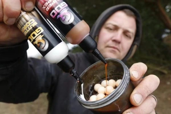 Môžete použiť aj tekutiny, ako napríklad Korda Goo, pokiaľ nie sú na vodnej báze, a tie sú ideálne na striekanie do vrecka po jeho uviazaní – s Goo jednoducho zatlačte koniec trysky cez bočnú stranu vrecka a vytlačte tekutinu.
