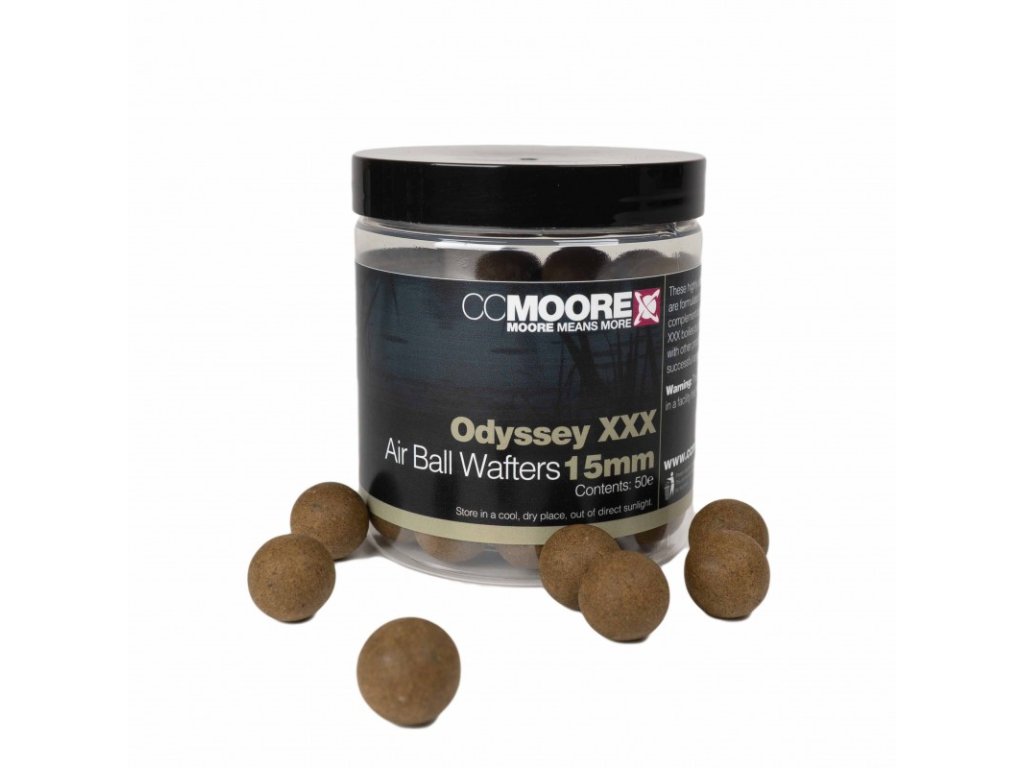 CC Moore Air Ball Wafters Odyssey XXX 15mm 50ks - Odyssey XXX sa behom dvoch sezón na našich vodách stala pojmom. Mnohí rybári, ktorí chcú kvalitu priamo z Anglicka, volia práve túto zmes.Tieto pop up sú rovnako zafarbené ako klasický boilies Odyssey XXX. Dôraz je kladený na vzplývavost a snahu odradiť nechcené druhy rýb svojou nižšou “atraktivitou”. Obsahujú 10% GLM extraktov a ďalšie silné atraktory, ktoré robia z odyssey XXX nástroj na chytanie veľkých rýb.