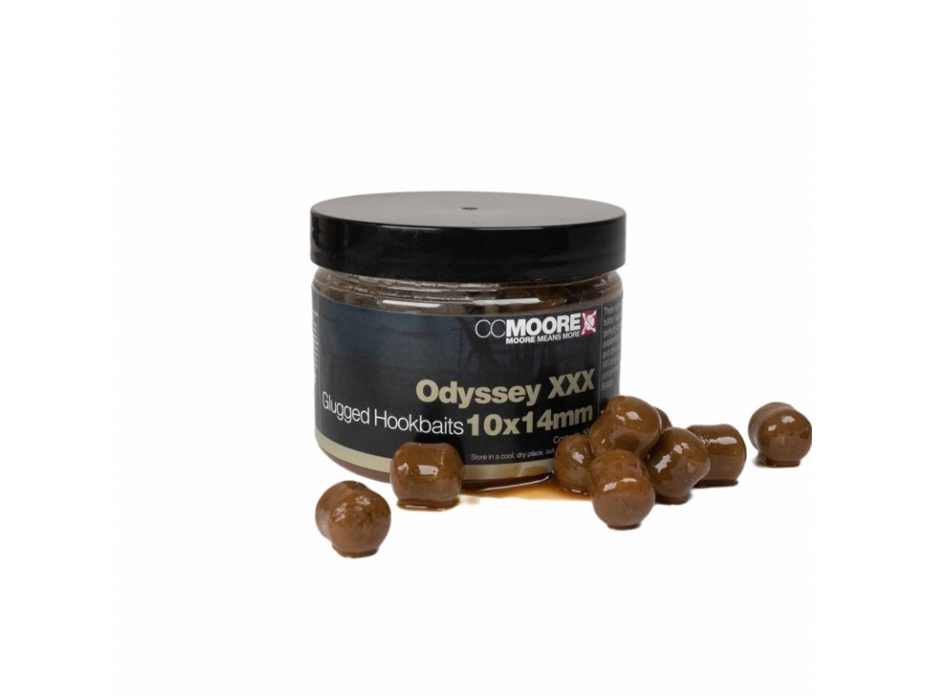CC Moore Hookbaits Glugged Odyssey XXX 15x18mm 50ks - Veľmi atraktívne, spevnené, návnady na dno v tvare činky vlepené do nášho neodolateľného Odyssey XXX Bait Booster.Nástrahy Odyssey XXX Glugged Hookbaits sú navrhnuté pre rybolov v spojení s boilies Odyssey XXX a ďalšími produktmi radu Odyssey XXX Boilie Range.