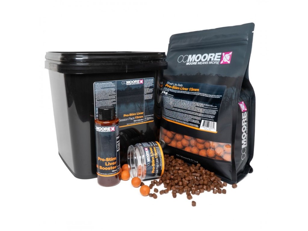 CC Moore Session Pack Pro-Stim Liver 18mm 3kg - Toto balenie za skvelú cenu obsahuje všetky produkty potrebné na to, aby sa ryby dostali do veľmi atraktívneho balenia návnady Pro-Stim Liver, ktoré možno použiť v mnohých rôznych situáciách pri rybolove.