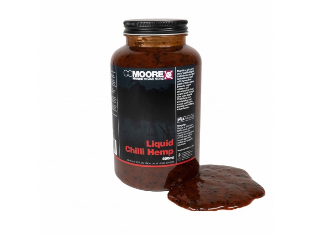 Jedinečné tekuté návnadové aditívum CC Moore Tekutá potrava Liquid Chilli Hemp 500ml je nabité výkonnými prírodnými spúšťačmi kŕmenia rýb, ktoré už mnoho rokov úspešne používajú kaprári a rybári. Obsahuje čisté zmiešané konope a chilli papričky, ktoré spolu pridávajú silné prírodné atraktory do boilies, sypkých krmív a návnad na háčik. Liquid Chilli Hemp je šetrný k PVA a je vynikajúcim posilňovačom zmesí PVA sáčkov a ďalších návnad.Toto vysoko účinné tekuté krmivo na báze chilli konope je štipľavé, energeticky bohaté aditívum, ktoré dodáva návnadám základné živiny a pikantnú chuť a uvoľňuje jemné častice a silné prírodné atraktory do všetkých vrstiev vodného stĺpca, čím stimuluje silnú odozvu kŕmenia od kaprov a iné druhy.