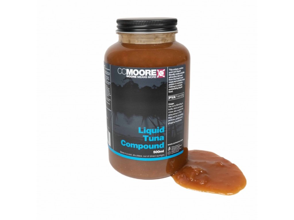 CC Moore Tekutá potrava Liquid Tuna Compound 500ml je vysoko atraktívna tekutá prísada šetrná k PVA obsahujúca vysoko kvalitný tuniakový olej, rozpustný tuniakový proteínový extrakt a vysoký obsah mixovaného tuniakového mäsa.Liquid Tuna Compound je populárna prísada do boilies a návnad, aditívum alebo zálievka, ktorý stimuluje silnú odozvu kŕmenia. Používa sa ako booster alebo ako zložko do rôznych mixov, ktorá tiež vytvára vysoko atraktívny olejový oblak čerstvých častíc tuniaka. Spája všetky skvelé rybie atraktanty získané z čistého celého tuniaka a spája ich do jedného neodolateľného tekutého krmiva.
