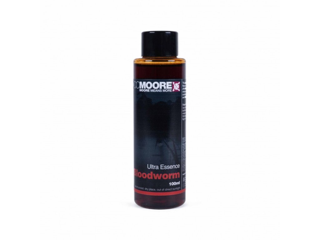 CC Moore Ultra Esencia Bloodworm 100ml - Bohatá, pikantná príchuť patentky (pakomára), ktorá je mimoriadne účinná v zmesiach na boilies aj nástrahy. Dobre sa mieša s väčšinou typov príchutí.