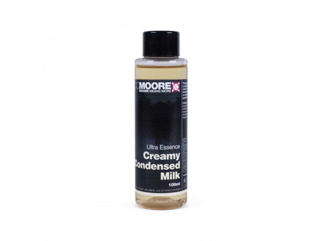 CC Moore Ultra Esencia Creamy Condensed Milk 100ml ľahodne krémová, sladko-mliečna príchuť, ktorá je mimoriadne účinná v boilies a návnadových zmesiach. Dobre sa mieša s väčšinou druhov esencií.Všetky esencie v rade príchutí CC Moore účinne zvýšia príťažlivosť akejkoľvek návnady a dodajú výraznú arómu a silnú chuť stimulujúcu žravosť pre boilies, chytačiek, krmivá a zmesi do PVA sáčkov, vďaka čomu sú pre ryby veľmi atraktívne a neodolateľné.