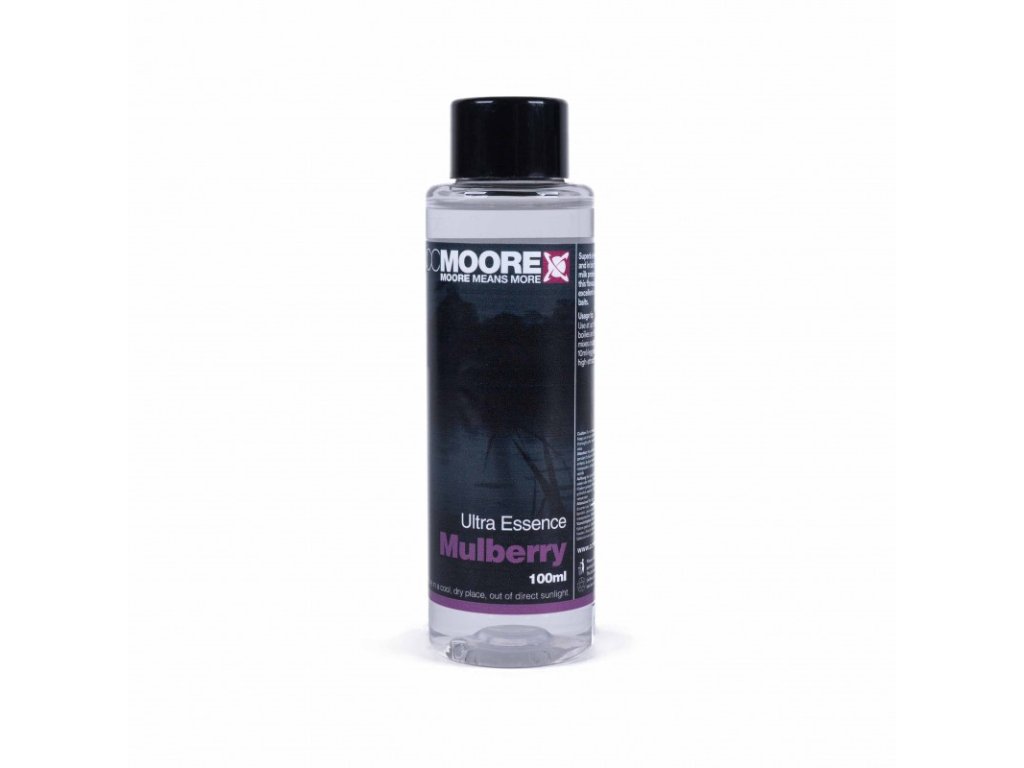 CC Moore Ultra Esencia Mulberry 100ml jemná, výrazná, sladká ovocná príchuť zrelého ovocia, ktorá je mimoriadne účinná v boilies zmesiach. Dobre sa mieša s väčšinou druhov chutí.Všetky esencie v rade príchutí CC Moore účinne zvýšia príťažlivosť akejkoľvek návnady a dodajú výraznú arómu a silnú chuť stimulujúcu žravosť pre boilies, chytačiek, krmivá a zmesi do PVA sáčkov, vďaka čomu sú pre ryby veľmi atraktívne a neodolateľné.