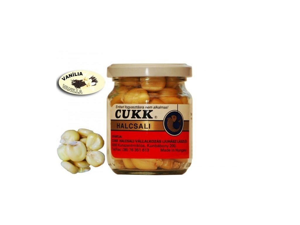 Cukk Kukurica Vanilka Mega 125g - Osvedčená rybárska zaváraná kukurica bez nálevu od maďarského výrobcu firmy Cukk.