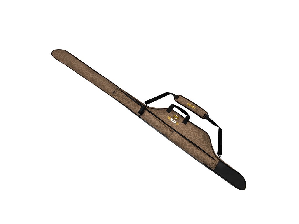 Na bočnej strane je umiestnené dlhé vrecko so zipsom, ktoré bez problémov pojme napríklad podberák. Na tomto vrecku je navyše našité vonkajšie vrecko a uťahovací popruh s klipom. To umožňuje transport ďalšieho prúta ale taktiež tu môžete upevniť iné príslušenstvo ako napríklad kobru alebo rázsošky. Pohodlný transport puzdra zaručuje dĺžkovo nastaviteľný popruh na rameno s vystuženou časťou a dve rukoväte.