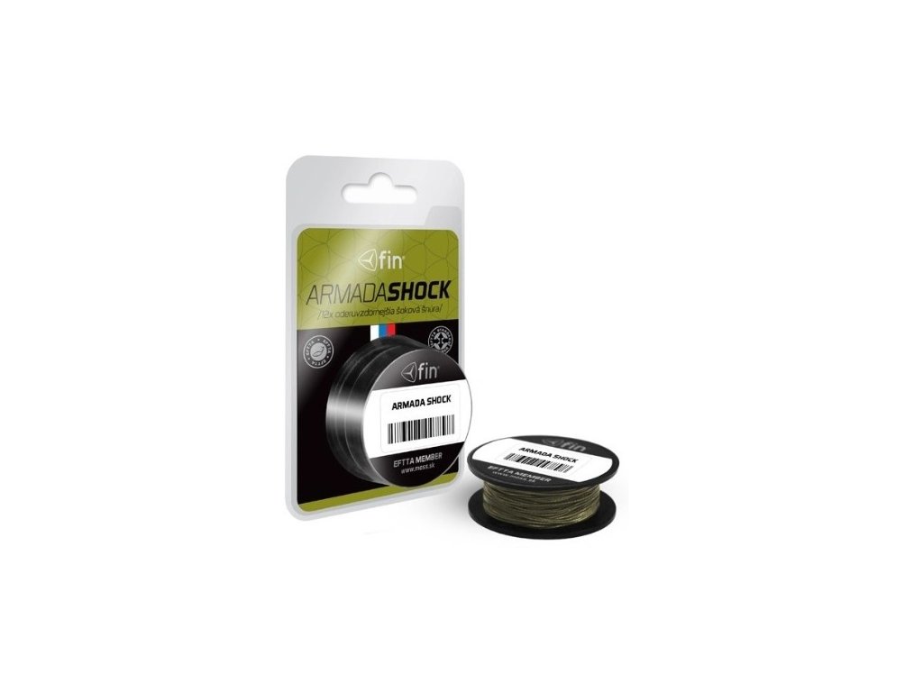 Delphin Armada Shock 0,30mm 20m 68lb : Táto šoková šnúra je pletená z ôsmich mikrovlákien. Pletenie ôsmich mikrovlákien vytvára jemnú, dokonale guľatú štruktúru s mimoriadnou nosnosťou tejto výnimočnej šokové šnúry.