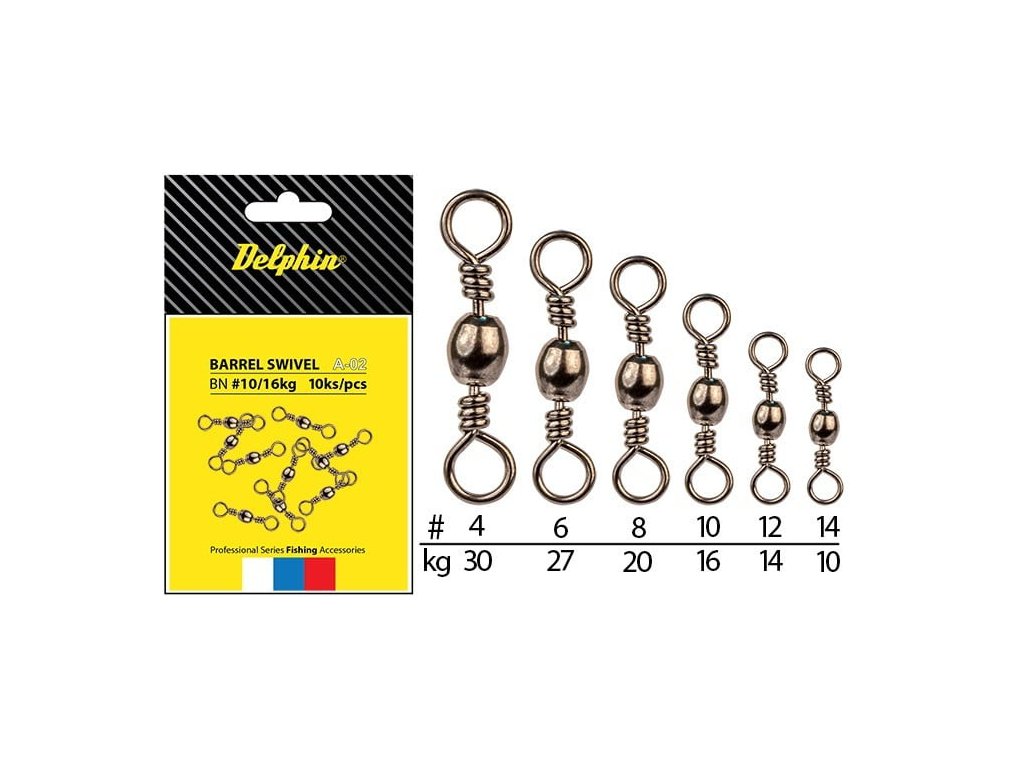 Delphin Barrel Swivel A-02/10ks BN/10 - Séria obratlíkov a karabíniek slúži ako drobné príslušenstvo pre výrobu rôznych koncových zostáv.