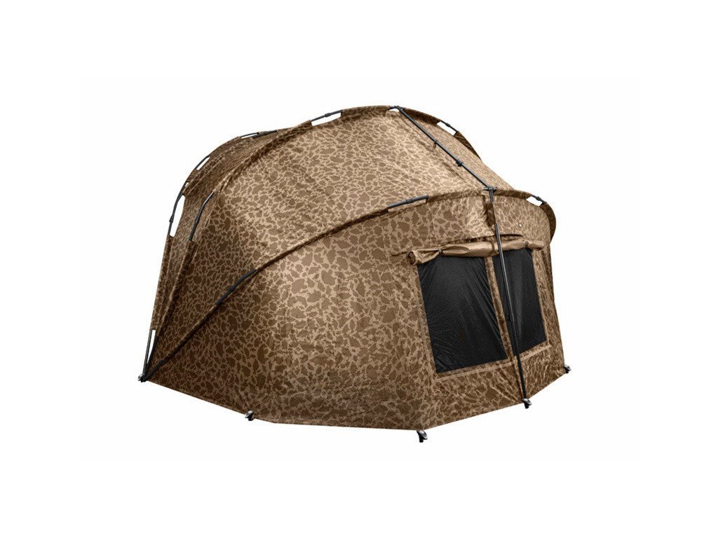 Extra pevná garážová konštrukcia s tromi rebrami zaručuje nekompromisnú stabilitu v akýchkoľvek poveternostných podmienkach. Spolu s použitou látkou najvyššej kvality a kompletne podlepenými švami odolá aj silným búrkam, vetru a výdatnému množstvu zrážok. Nespornou prednosťou bivaku je látka s obľúbeným vzorom CARPATH, čo určite nadchne všetkých priaznivcov tejto originálnej kamufláže. Vďaka rozmerom bivaku sa doňho bez problémov vojdú 2 lehátka, pričom stále ostane vo vnútri veľkorysý priestor na pohyb, ale taktiež na tašky a ďalšie komponenty výbavy potrebnej pre pohodlný pobyt pri vode. V prípade potreby pojme vnútorný priestor dokonca až 3 lehátka. Samozrejmosťou sú tiež dva úchyty na zafixovanie prútov, ale taktiež veľký šilt, ktorý poskytuje ochranu pred slnkom či dažďom. Vo vnútri sú na strope bivaku navyše umiestnené 2 háčiky, na ktoré je možné zavesiť napríklad lampu.