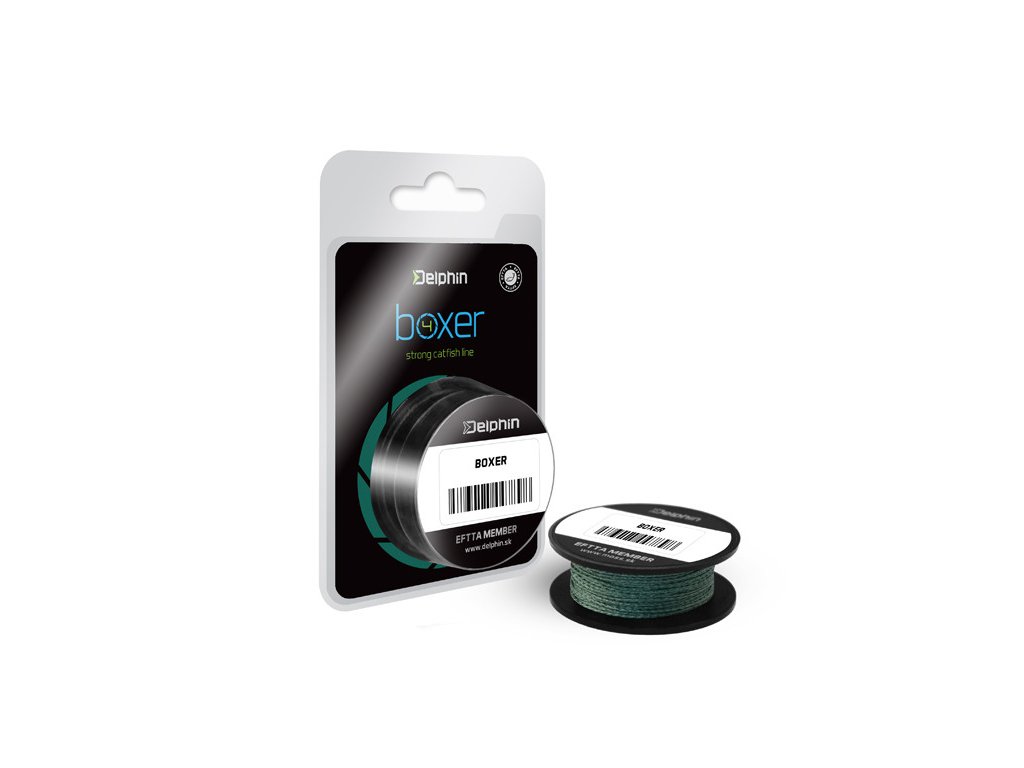 Delphin BOXER Zelená 0,70mm 62,8kg 10m - Silná sumcová šnúra v cene monofilu!Delphin BOXER je silnou šnúrou s oderuvzdornou povrchovou úpravou, určenou pre lov najťažších rýb. Pre jej výrobu boli použité PE mikrovlákna s vysokou hustotou pletenia, čo predstavuje až 3 násobne vyššiu reálnu nosnosť oproti monofilu rovnakého priemeru. Vzhľadom k porovnateľnej cene s monofilom je Delphin BOXER určite výbornou voľbou.