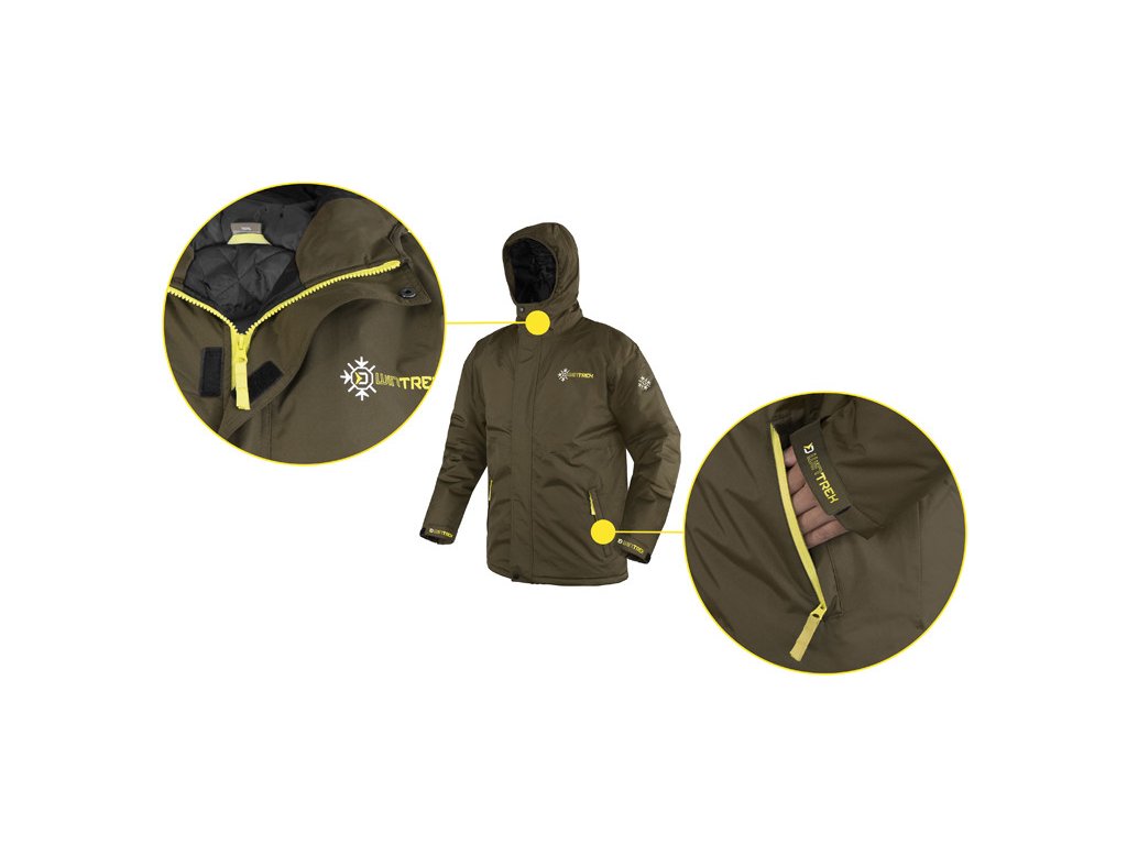 Vonkajšia tkanina ponúka vodný stĺpec 5000mm, čo zabezpečí perfektnú ochranu proti dažďu aj snehu a udrží Vás tak v suchu a v pohode. Samozrejmosťou sú podlepené švy, hrubá vnútorná výplň a odolnosť voči vetru, zaručujúce ochranu pred nepriazňami počasia počas vašich rybárskych výprav, či iného pobytu v prírode. Toto všetko vám navyše WinTREK poskytne za mimoriadne priaznivú obstarávaciu cenu.