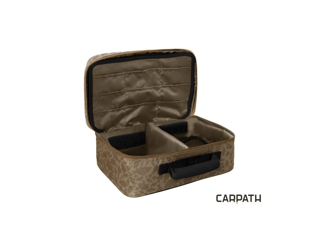 Delphin Carpath Area TACKLE taška na bižutériu - Taška na bižutériu Delphin Area TACKLE Carpath je praktická polstrovaná taška určená predovšetkým na odkladanie rybárskej bižutérie. Hlavný úložný priestor je oddelený vyberateľnou polstrovanou prepážkou na suchý zips, kde možete uložiť škatuľku s nadväzcami, olovkami alebo si tam viete odložiť aj signalizátory záberu.