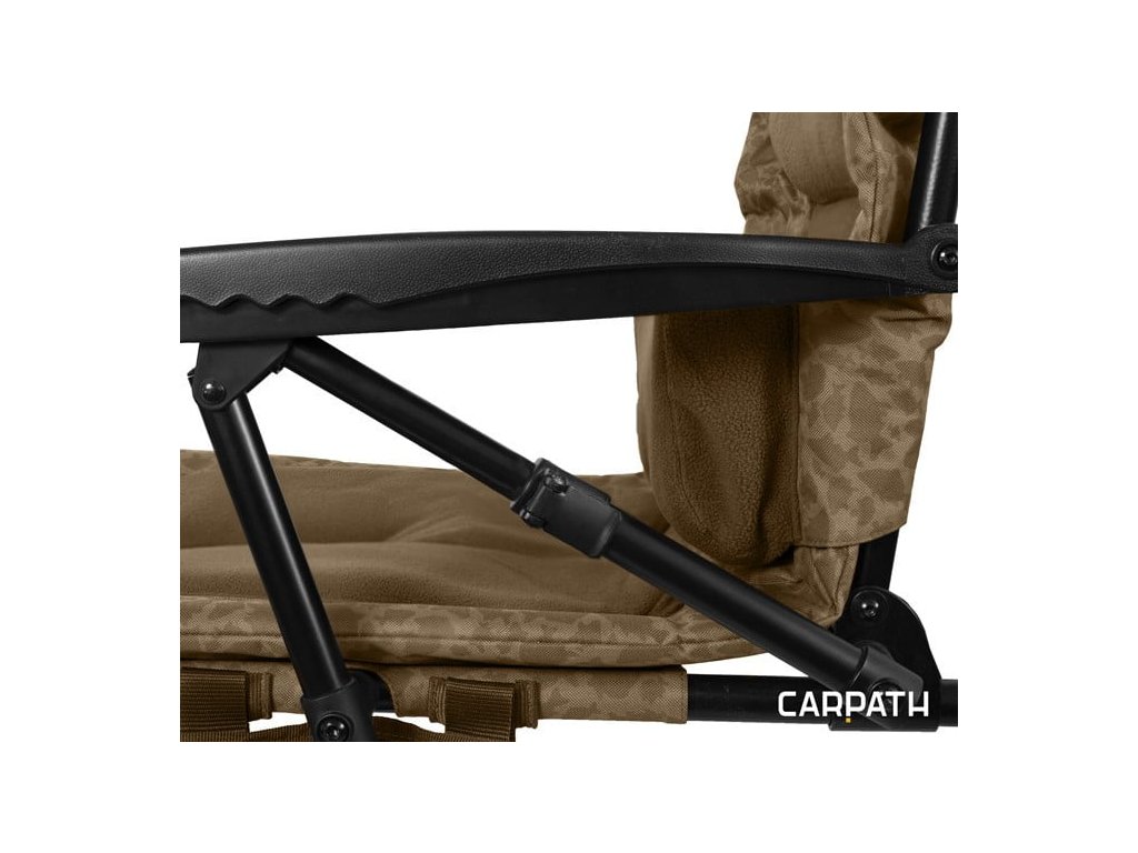 Kreslo je vyrobené v našej jedinečnej kamufláži CARPATH v odtieňoch hnedej farby s opierkou čiernej farby.