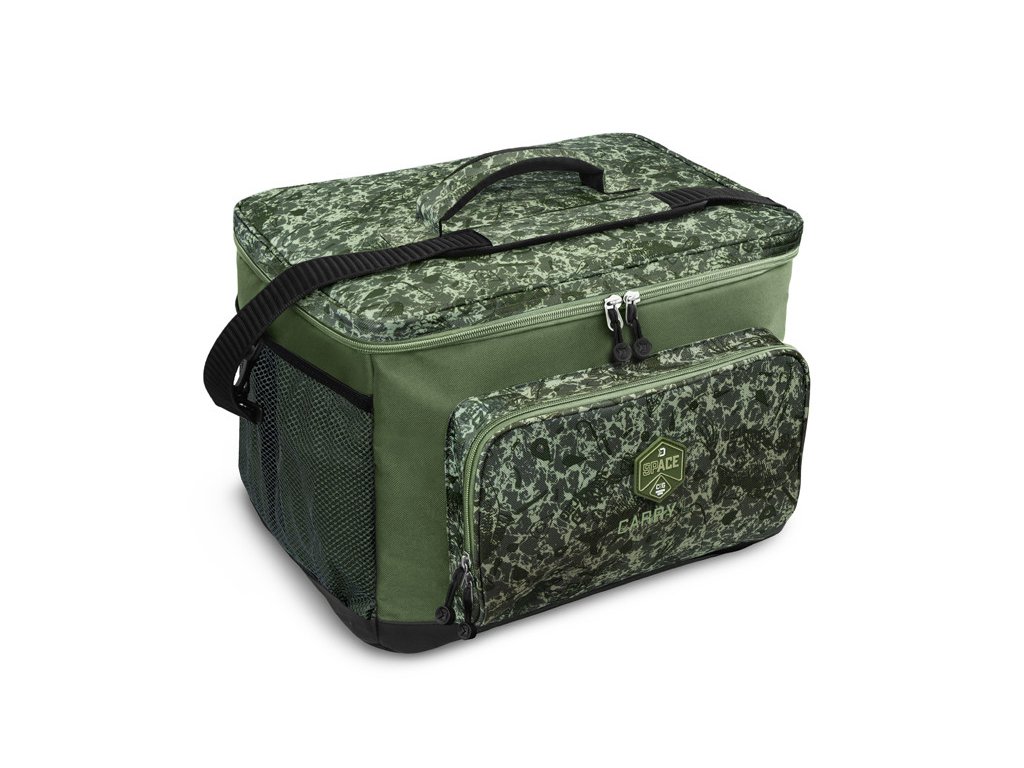 Delphin CarryAll Space C2G L Taška - Delphin SPACE je označenie pre exkluzívnu sériu tašiek z dielne značky Delphin. Vyznačuje sa špičkovým spracovaním, kvalitnými zipsami, ale najmä výnimočným dizajnom s použitím C2G kamufláže.CarryALL L dopĺňa rodinu CarryALL SPACE C2G o rozmerovo kompaktnejšiu, praktickú transportnú tašku, určenú na uloženie a prenos rôzneho kaprárskeho príslušenstva, či oblečenia. Vďaka svojím rozmerom poskytuje objem až 35 l. Tak ako všetky ostatné tašky v tejto rade aj veľkosť L bola navrhnutá s dôrazom na praktickosť, trvácnosť a odolnosť voči nepriaznivým poveternostným vplyvom. Taška je zo všetkých strán dôkladne polstrovaná pre maximálnu ochranu príslušenstva vo vnútri. Celá spodná časť a boky do výšky až 5 cm sú opatrené kvalitným nepremokavým materiálom. Nehrozí tak znečistenie a následne znehodnotenie produktu pri položení napríklad na mokrú alebo špinavú zem. Dve sieťované vrecká po bokoch a jedno veľké vo vnútri umožňujú uloženie ďalšieho príslušenstva, o ktorom budete mať vždy dokonalý prehľad. Taška disponuje taktiež praktickým vreckom s dvoma zipsami na prednom paneli. Samotné vnútro je navrhnuté tak, aby doň bolo možné s ľahkosťou vkladať ďalšie tašky série SPACE či AREA. Maximálny komfort zabezpečuje mimoriadne mäkké polstrovanie ramenného popruhu, či praktická rukoväť umožňujúca prenos tašky v ruke.