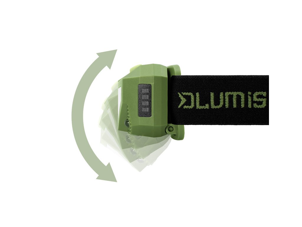 Pohybový kĺb, na ktorom je čelová lampa osadená, umožňuje nastavenie uhla sklonu podľa aktuálnych podmienok. Elastický, dĺžkovo nastaviteľný popruh zabezpečuje pohodlné nosenie pre každého