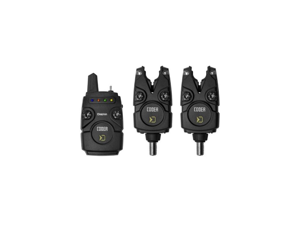 Delphin CODER 2+1 sada signalizátorov : Delphin CODER je sada elektronických signalizátorov s príposluchom, pri ktorej sa stretol ideálny pomer priaznivej ceny s výkonom. Jej prednosťami sú najmä spoľahlivosť a 100% funkčnosť, ktorou sa môže bez problémov rovnať aj s drahšími sadami. Signál medzi signalizátormi a príposluchom sa dokáže v ideálnych podmienkach preniesť na vzdialenosť až 140m. Celá sada je dodávaná v tvrdom plastovom kufríku, ktorý sa stará o bezpečnosť pri transporte.