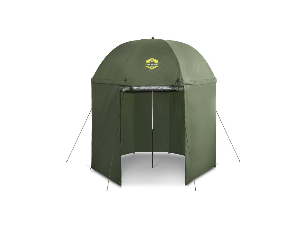 Delphin Dáždnik s bočnicou THUNDER FullWALL 250cm 4/4 - Dáždnik s kompletne uzatvárateľnou bočnicou Delphin THUNDER FullWALL je ideálnou voľbou do nepriaznivého počasia počas kratších výprav. Perfektne ochráni pred nepríjemným slnkom, rannou rosou, ale aj vyšším úhrnom zrážok. Pre lepšiu stabilitu vo vetre je opatrený štyrmi ukotvovacími lanami. Švy dáždnika sú dôkladne podlepené vodeodolnou páskou pre zabezpečenie 100% nepremokavosti aj v prípade silného dažďa.