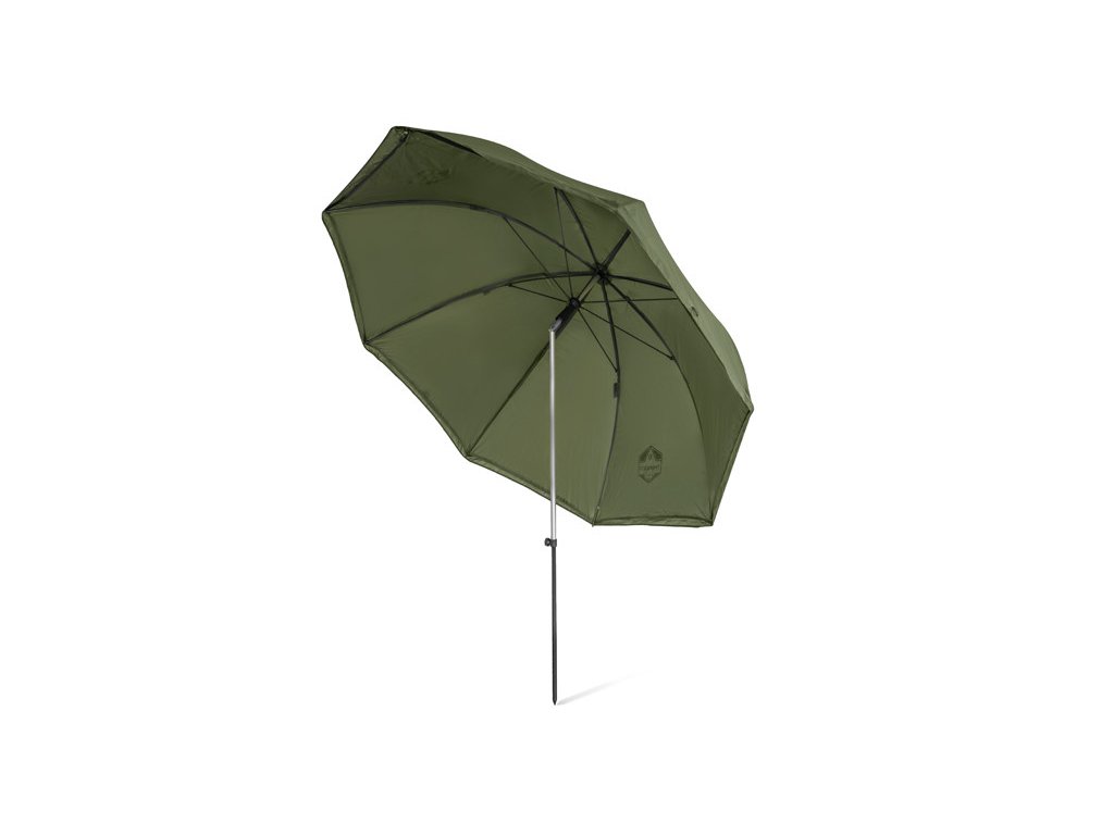Spodná časť bočnej steny je osadená úchytmi pre pripevnenie k zemi pomocou zaisťovacích kolíkov, ktoré sú súčasťou balenia. Výšku a sklon dáždnika je možné prispôsobiť podľa potreby, čo zároveň uľahčí jeho upevnenie aj v členitejšom teréne.