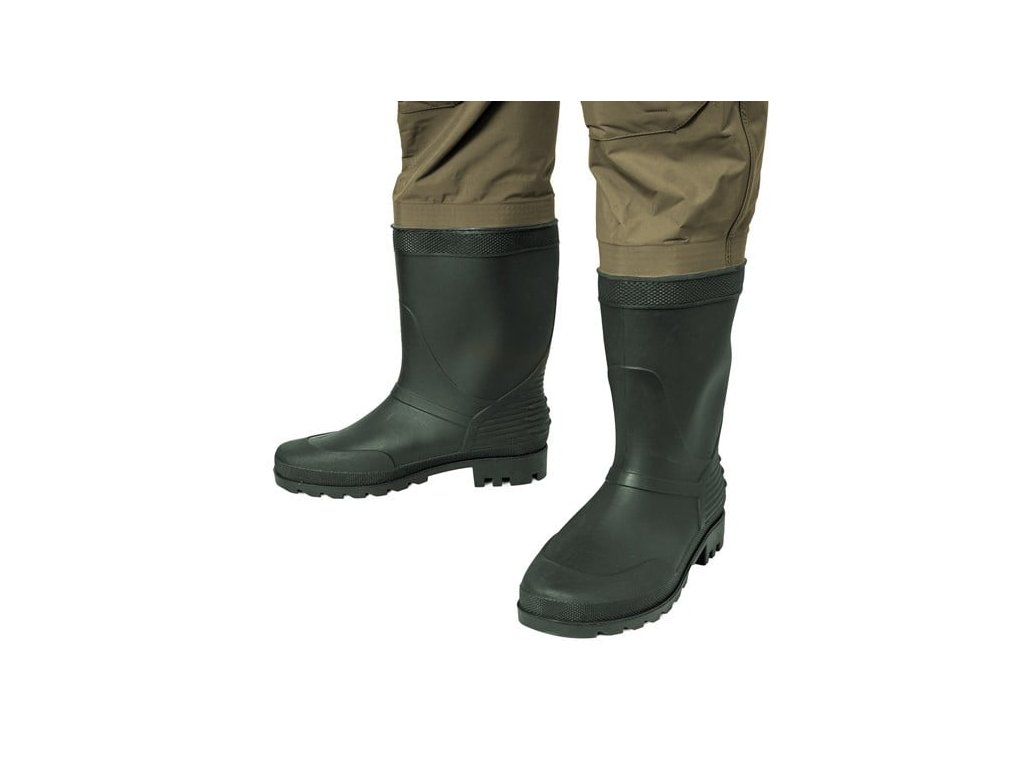 Moderný materiál zaručuje úplnú vodeodolnosť a zároveň pohodlné nosenie vďaka nízkej hmotnosti. Navyše vo vnútri prsačiek sa nachádza všitá sieťka, ktorá znižuje priamy dotyk kože a vodotesného materiálu a tým výrazne obmedzuje potenie. Obrovským bonusom ktorý je nevídaný v tejto kategórii je neoprénová výstuha kolien, čo umožňuje napríklad aj veľmi komfortné kľaknutie pri vode. Okrem štandardných nastaviteľných popruhov na plecia, disponuje tento model aj vyberateľným opaskom, čo umožní ešte lepšie prispôsobenie postave rybára. Gumené čižmy s odolnou a stabilnou podrážkou vás podržia aj v náročnejších podmienkach. Samozrejmosťou sú aj výčnelky v oblasti päty pre ľahšie vyzúvanie.