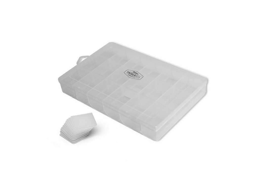 Delphin krabicka B-06 - Krabica Delphin B-06 patrí do kategórie plastových krabíc, určených k uskladneniu rybárskeho príslušenstva. Box je vhodný aj pre tašku Delphin DRAVEC QUICK. Krabica obsahuje priehradky a prepážky, pomocou ktorých je možné organizovať a určovať veľkosť a počet vnútorných priehradiek pre dokonalé uloženie nástrah, či príslušenstva. Krabica je vyrobená z priehľadného materiálu, takže okamžite vidíte uložené veci vo vnútri. Materiálové zloženie umožňuje bezproblémové uskladnenie mäkkých nástrah bez rizika „rozleptania“.