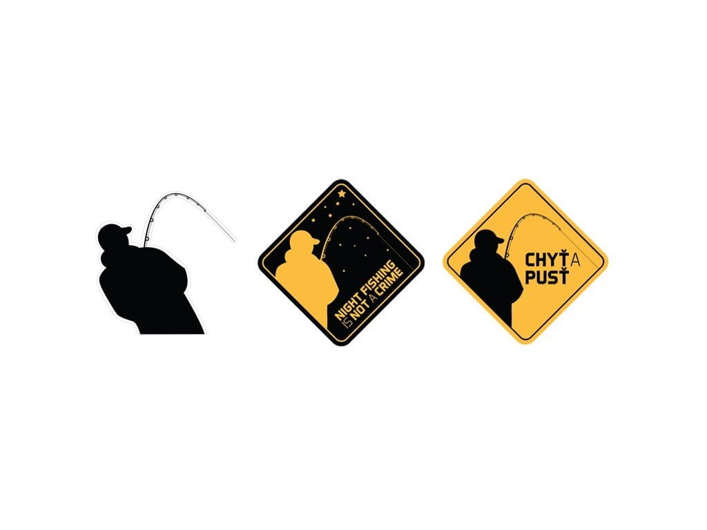 Nálepka čiernej siluety rybára je vytlačená na transparentnom podklade a následne orezaná blízko hraníc tlače, vďaka čomu odpadá náročné lepenie pomocou prenášacej fólie. Približný rozmer 7x7cm.