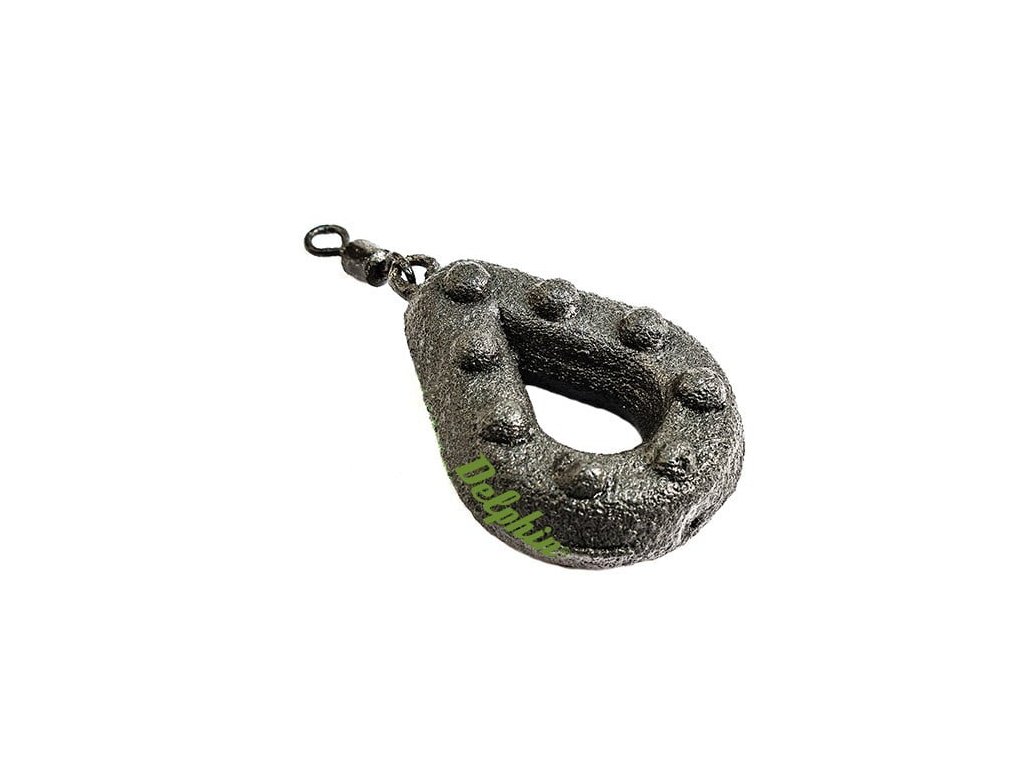 Delphin Olovo Barbed 230g - Kvalitne opracovaná olovená záťaž. Povrchová úprava záťaže vysoko trvácnou práškovou farbou zabraňuje odleskom a uvoľňovaniu nežiadúcich látok do vody. Osadená je obratlíkom pre vytváranie pevných alebo priebežných koncových zostáv.
