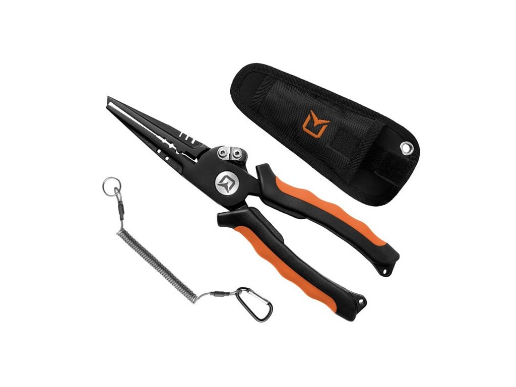 Vnútorna plocha klieští poskytuje dostatok gripu pre uchopenie aj veľkých dvojháčikov a trojháčikov. Sú vyrobené z nerezovej ocele a ich obe rúčky sú vybavené plastom oranžovo čiernej farby, ktoré sú dobre viditeľné za každých podmienok a dobre padnú do ruky. S našimi kliešťami PROFISET viete odteraz rybu bezpečne zbaviť uviaznutých háčikov, otvárať krúžky, strihať nadväzce alebo krimpovať s hĺbkou krimpovacích čeľustí je 9mm. Kliešte sú dodávané s praktickým čiernym púzdrom na opasok a čiernym naťahovacím lankom vybaveným na oboch koncoch karabínami. Na oboch ramenách rukoväte sa nachádzajú otvory na prevlečenie šnúrky.
