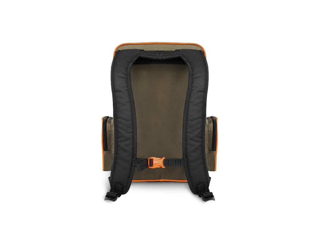 Ruksak je dômyselne spracovaný tak, aby poskytoval dostatok ukladacieho priestoru pre boxy s prívlačovými nástrahami, bižutériu, feedrové príslušenstvo, či akúkoľvek inú výbavu potrebnú k úspešnému lovu. Prístup do hlavného odkladacieho priestoru umožňuje zips umiestnený pod uhlom, pre zjednodušenie vkladania, či vykladania vecí. Ruksak okrem hlavného ukladacieho priestoru ponúka aj dve menšie zipsovateľné vrecká, nachádzajúce sa po bokoch. Nespornou výhodou v porovnaní s bežnými ruksakmi v podobnej cenovej kategórií je zipsovateľné vrecko v prednej časti, obsahujúce už v základe plastový box, využiteľný napríklad na nástrahy či feedrové krmítka. Vďaka transparentnému prevedeniu boxu, budete mať vždy dokonalý prehľad o tom, čo sa vo vnútri nachádza.
