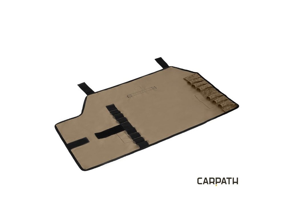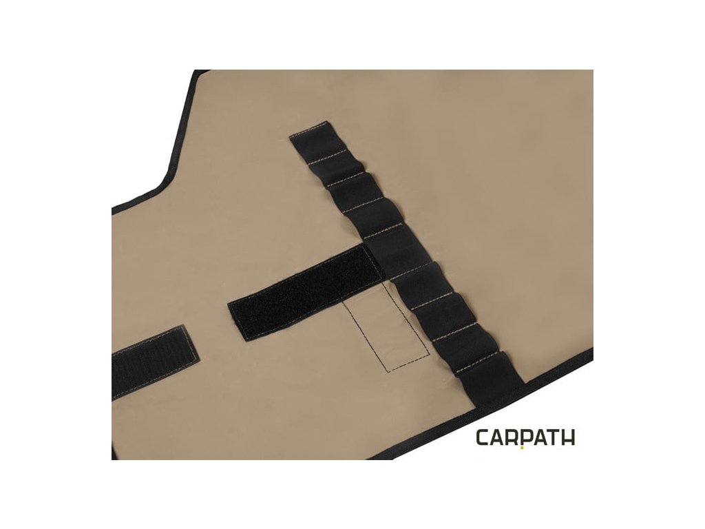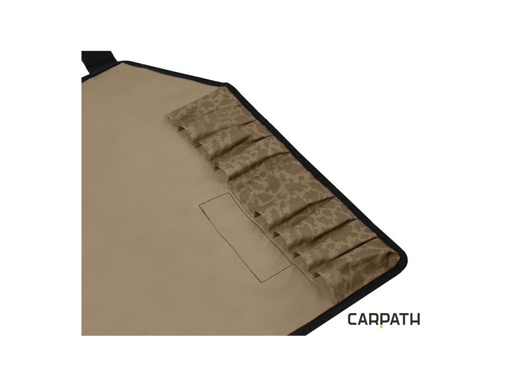 Preto sme spodnú časť, ktorá je určená pre zasúvanie hrotov, vybavili hrubým a zosileným materiálom. Teraz sa vám už nestane to, že by vám ostrý koniec prepichol tašku alebo inak poškodil veci uložené v nej. Obal s rázsoškami jednoducho zrolujete a zafixujete suchým zipsom, ktorý slúži aj ako ochrana proti poškriabaniu. Púzdro má na vrchnej strane našitý popruh, ktorý slúži ako rúčka na prenos púzdra. Dodávaný je v našej jedinečnej hnedej CARPATH kamufláži so siluetami kaprov.