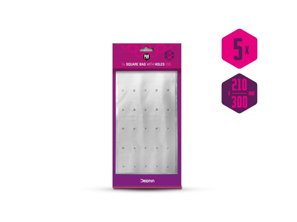 Delphin PVA Ntastic Sáčok s hranatými otvormi 10ks XL 300x210mm - Extra veľké, hranaté, vodou rozpustné PVA vrecko od slovenskej značky Delphin je určené na uloženie suchej vnadiacej zmesi pozostávajúcej z peliet, boilie, kukurice, či iného partikla. Tieto vrecká majú široké využitie pri love rýb, ako sú napríklad kapre, sumce, amure, či iné...