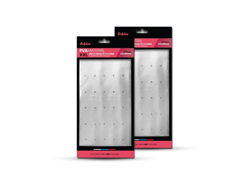 Delphin PVA vrecko hranaté s otvormi Delphin XXL / 5ks - Extra veľké, hranaté, vodou rozpustné PVA vrecko od slovenskej značky Delphin je určené na uloženie suchej vnadiacej zmesi pozostávajúcej z peliet, boilie, kukurice, či iného partikla. Tieto vrecká majú široké využitie pri love rýb, ako sú napríklad kapre, sumce, amure, či iné... Pripravená návnada zabalená vo vrecku sa nastraží k chytacej nástrahe v mieste lovu. PVA vrecko sa po čase priamo úmernom teplote vody rozpustí a tak uvoľní kŕmnu zmes v blízkosti chytacej nástrahy, čím výrazne zvýši jej atraktívnosť pre lovené ryby. Vďaka svojej extra veľkosti je možné umiestniť na kŕmne miesto výrazne väčší objem krmiva, ako u štandardných veľkostí. Vrecká majú maximálnu kapacitu až 1,5 kilogramu návnady, čo ich predurčuje k masívnemu a presnému zakŕmeniu daného priestoru! To výrazne zvýši vaše šance na prilákanie kapitálneho úlovku!