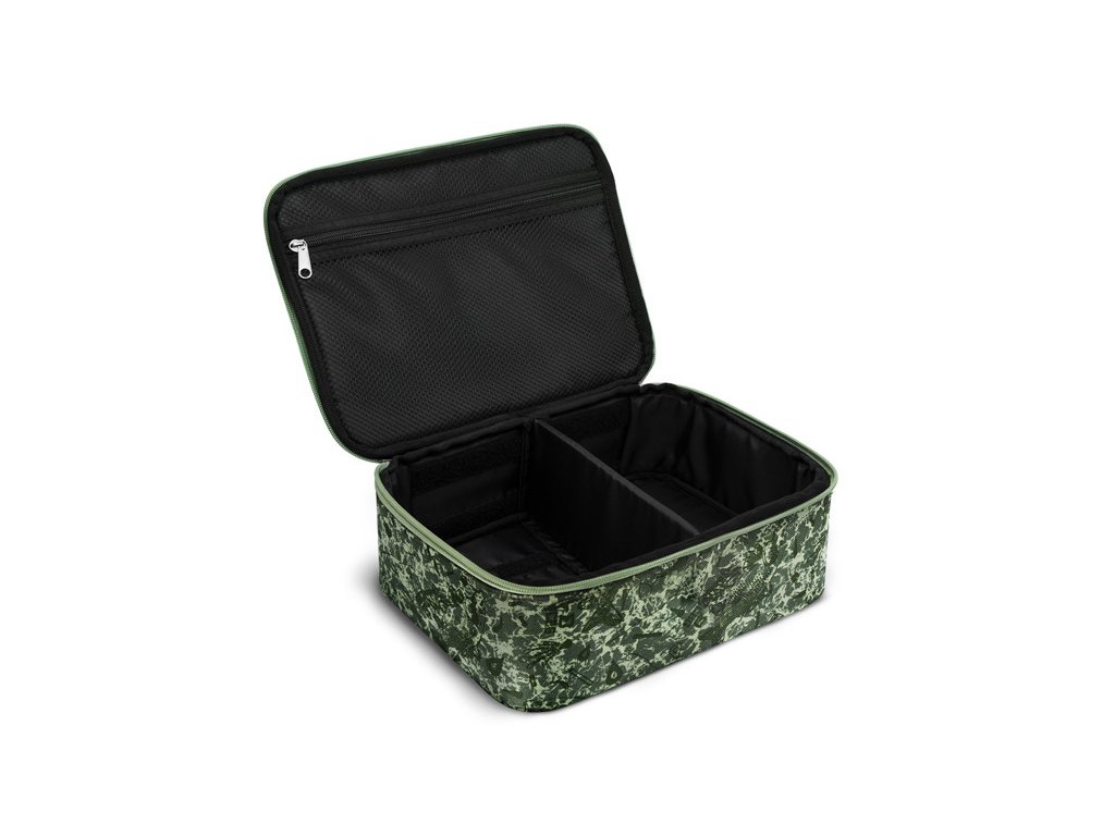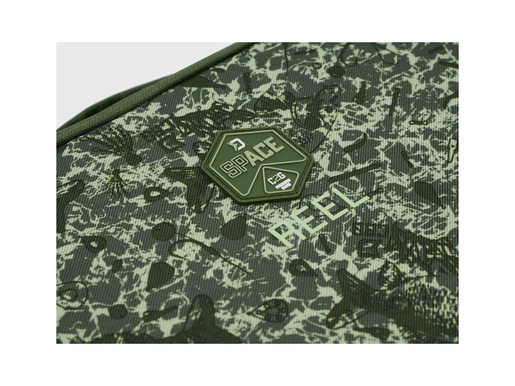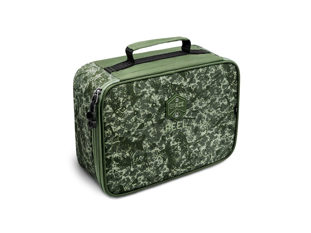 Delphin Reel SPACE C2G Taška na navijaky - Delphin SPACE je označenie pre exkluzívnu sériu tašiek z dielne značky Delphin. Vyznačuje sa špičkovým spracovaním, kvalitnými zipsami, ale najmä výnimočným dizajnom s použitím C2G kamufláže.Polstrované puzdro na navijaky, v ktorom budú vaše poklady v absolútnom bezpečí. Toto puzdro je určené buď pre dva menšie navijaky, kedy je posúvateľná prepážka v strede, alebo pre jeden veľkokapacitný navijak, kedy je prepážka pri kraji a oddeľuje navijak a náhradné cievky. Vďaka posúvateľnej priehradke dostávate neobmedzené možnosti pri tvorbe a využití vnútorného priestoru. Súčasťou tejto príručnej tašky je samozrejme madlo do ruky a vnútorné sieťované vrecko.