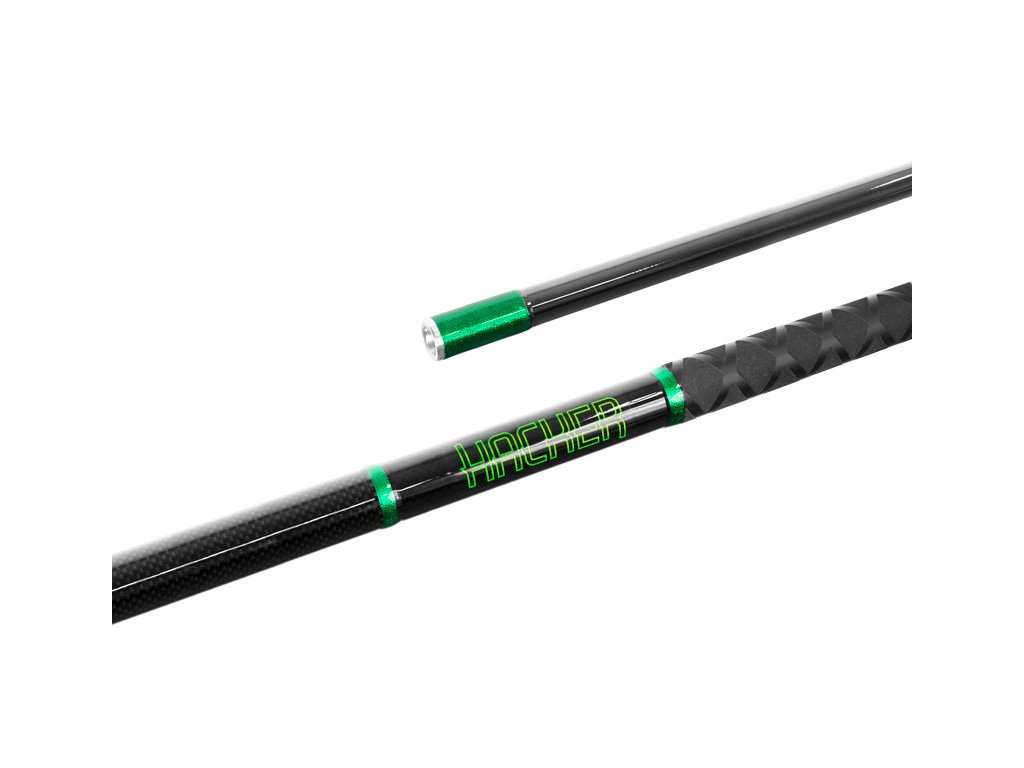 Delphin Rukoväť HACKER 2,10m - Dvojdielna teleskopická tyč HACKER s dĺžkou 210cm je vyhotovená z odolného a pevného 24T karbónu. Rukoväť je vyhotovená z príjemného materiálu NEO-FOAM, vďaka ktorému sa ani mokrá ruka z podberáka nezošmykne a ponúka suverénne uchopenie. HACKER sa vyznačuje použitými zelenými detailami z viazacej nite nad rukoväťou, kde nájdeme aj informácie o dĺžke, materiáli a názov produktu. Spodný diel tyče má čierne 3D karbónové zdobenie, vrchný diel má čiernu lesklú úpravu. Zelený konektor na pripojenie hlavy podberáka má štandardný závit, vďaka ktorému pripojíte väčšinu podberákových hláv na trhu. HACKER si istotne obľúbia priaznivci pretekárskeho lovu pstruhov, tzv. Trout Area, ale aj všetci tí, ktorí si potrpia na kvalitnú podberákovú tyč, ktorá má fantasticky zvolenú dĺžku.