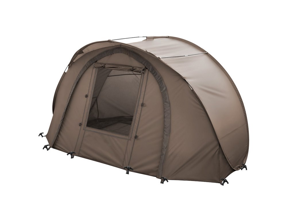 Jeho podstata spočíva v takzvanej “pop-up“ konštrukcii, vďaka ktorej ho je možné extrémne rýchlo a bez námahy rozložiť a zložiť. To je nespornou devízou pri krátkych, rýchlych rybačkách, kde nie je úplne pohodlné nosiť a rozkladať veľký bivak. To však nie je všetko, čo sa týka výhod tohto produktu. Jednou z nich je taktiež rozmer bivaku a tvar v zloženom stave. To ho umožňuje prepravovať vložený napríklad v zloženom lehátku, vďaka čomu nezaberie priestor navyše a v prípade potreby tak bude pre vás omnoho jednoduchšie prenášanie vecí na vzdialené, nedostupné miesta. Prístrešok bol navrhnutý rozmerovo tak, aby sa doň zmestilo jedno lehátko, pričom stále ostane priestor na tašky, stolík a iné potrebné príslušenstvo. V porovnaní s inými konkurenčnými modelmi tohto typu, má ten náš výrazný náskok vďaka väčšej hĺbke, čo znamená viac miesta pre Vás a Vašu výbavu. Napriek tomu je veľmi kompaktný a jeho rozmery teda umožňujú rozložiť váš “camp“ aj na veľmi malých, ťažko prístupných zarastených miestach. Jednoducho povedané, všade tam kde dokážete postaviť lehátko, čo by s veľkým bivakom garážovej konštrukcie vo veľa prípadoch možné nebolo. Vzhľadom na to budete schopný pohodlne loviť na málo prechytávaných častiach revíru a budete tak vždy o krok vpred pred ostatnými rybármi.