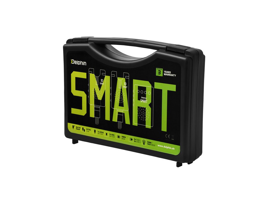 Delphin Sada Signalizátorov SMART 2+1 - Nevšedná sada elektronických signalizátorov záberu s príposluchom, ktorou sa jednoznačne odlíšite od zvyšku rybárov. Charakteristickým znakom je nezvyčajne štíhle prevedenie jednotlivých komponentov. Napriek svojím kompaktným rozmerom Delphin SMART poskytuje spoľahlivú signalizáciu záberu, či už zvukovú, svetelnú alebo vibračnú. Telo signalizátorov aj príposluchu je vyrobené z veľmi pevného a odolného plastu, ktorý prispieva k dlhej životnosti. Pre maximálnu bezpečnosť počas transportu je sada dodávaná v praktickom ochrannom kufríku.