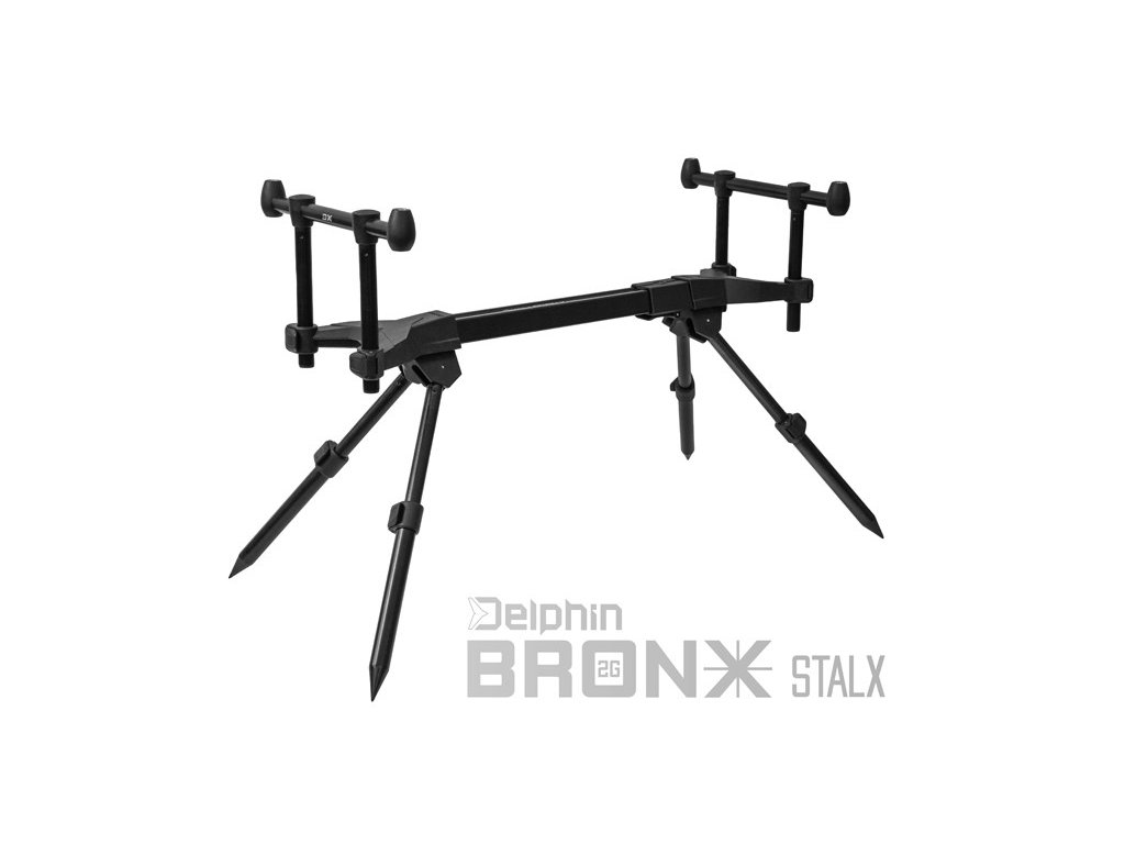 Delphin stojan BRONX 2G STALX - Rodpod Delphin BRONX 2G STALX je kompaktnejšia verzia dobre známeho rodpodu BRONX 2G. Preto sme zachovali všetky jeho charakteristické dizajnové prvky a vlastnosti, pre ktoré je tak vyhľadávaný množstvom kaprárov. Rozmery verzie STALX sú prispôsobené stále populárnejšiemu, minimalistickému stalkovému štýlu, ktorý umožňuje lov na ťažko dostupných miestach.