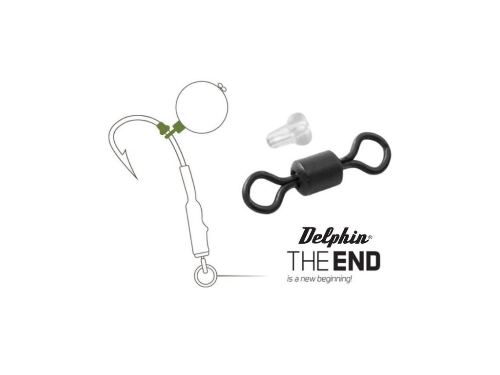 Delphin THE END Obratlík Ronnie vel.7 + gumenný stoper 20+10ks : Súprava obratlíkov a gumových stopérov vhodných na výrobu koncovej montáže Ronnie Rig určenej na lov kaprov na plávajúce nástrahy.