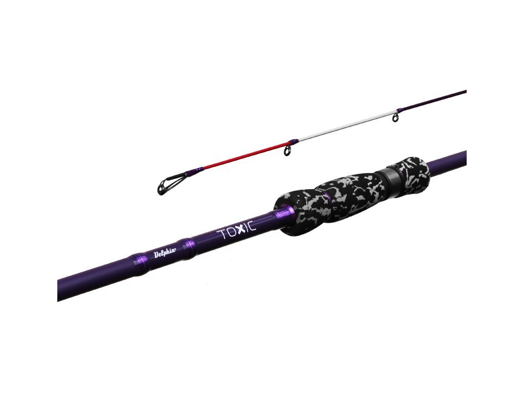 Delphin Toxic spin 240cm 7-30g - Absolútne neprehliadnuteľný model od značky Delphin! Rýchly, temne fialový blank zo špičkového 30T carbon-u nenechá rybára o svojom predurčení váhať ani sekundu. Presné nahadzovanie, bezchybné vodenie nástrahy, šialene rýchle zaseknutie, ale aj silovejšie zdolávanie. To je TOXIC, prút tak nekompromisný, ako len môže byť. Nezameniteľný blank Toxicu prechádza do agresívne tvarovanej fŕkanej rukoväti, ktorá padne okamžite do ruky. Osadené vysokokvalitné pretvarované očká sú samozrejmosťou a dotvárajú dokonalý koncept tohto prúta. Buď si TOXIC, alebo nie si!