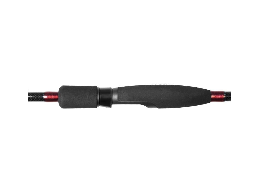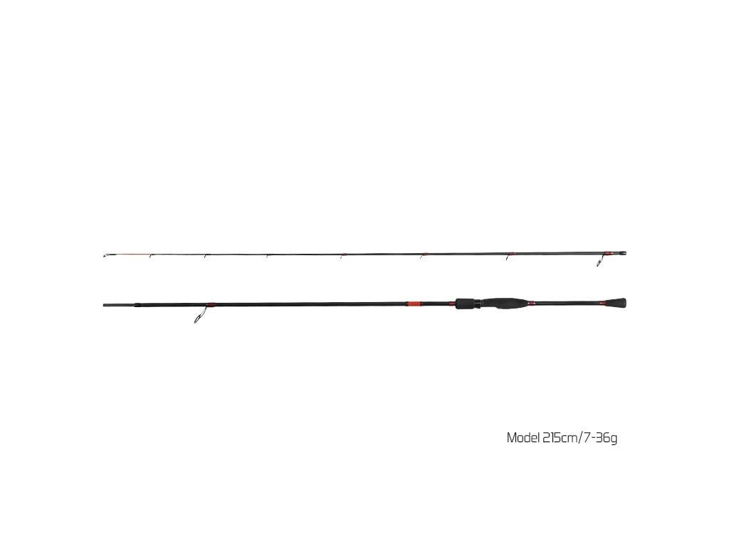 Prúty výborne sedia v ruke vďaka ergonomickému tvarovaniu rukoväte z EVA peny. Delená rukoväť a jej tvar výrazne napomáha k veľmi dobrému vyváženiu prútov série BANG! Ani niekoľko hodinový lov s neustálym nahadzovaním neunavuje. Práve naopak, s týmto prútom si budete užívať každú chvíľu pri vode! Kónus karbónového 24T blanku vytvára "áčkovú” akciu s pevným chrbtom a citlivou špičkou prúta. Záber sa tak okamžite prenáša do rukoväte prúta čo dovoľuje okamžitú reakciu a rýchly zásek. Medyi prvými dvoma očkami je červená kontrastná časť, pre lepšiu indikáciu záberov. Ostatné časti prúta sa nesú v kombinácii krvavo červenej farby a matného čierneho blanku, dokonale podčiarkujúceho celkový športový charakter prúta. Presne určená veľkosť očiek s výplňou SiC a ich rozloženie umožňujú dokonale presné nahadzovanie nástrahy do lovného miesta.