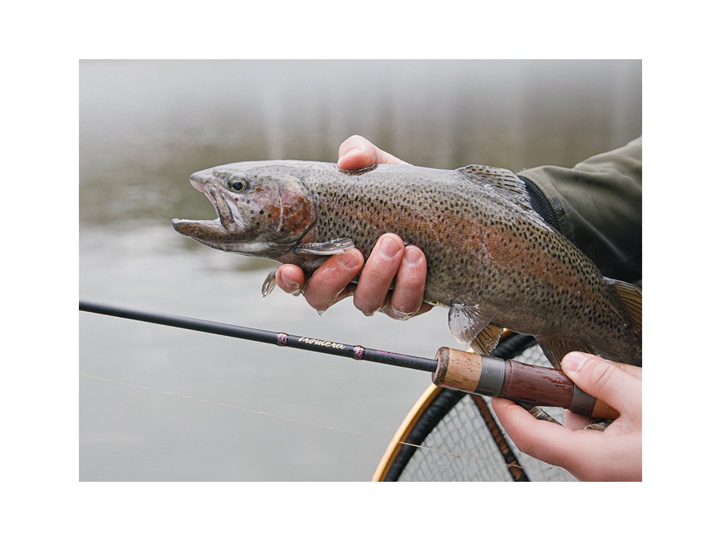 Veľmi citlivý, štíhly blank postavený na 24T karbóne robí prút extrémne ľahkým a umožňuje nahadzovanie aj tých najmenších nástrah. Prút je vybavený citlivou vlepovanou špičkou, ktorá vám umožní zachytiť aj tie najjemnejšie zábery opatrných pstruhov. Vďaka parabolickej akcii prúta, dokážete efektívne zdolať ryby aj pri použití veľmi jemných vlascov a tenkých háčikov. K precíznemu vedeniu jemnej šnúry alebo vlasca dopomáhajú aj jednostopkové očká so SIC výplňou, ktoré boli na prút TROUTERA SoftLURE použité. Čierne vynutie očiek a samotné čierne očká skvelo ladia s celkovým dizajnom prúta.
