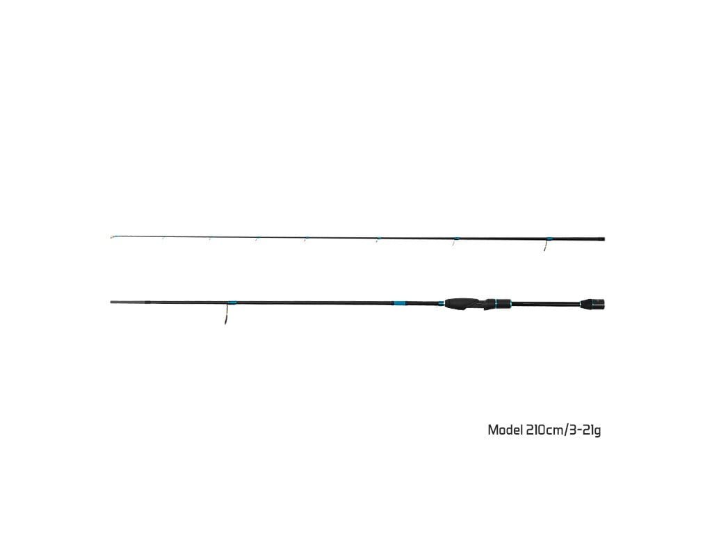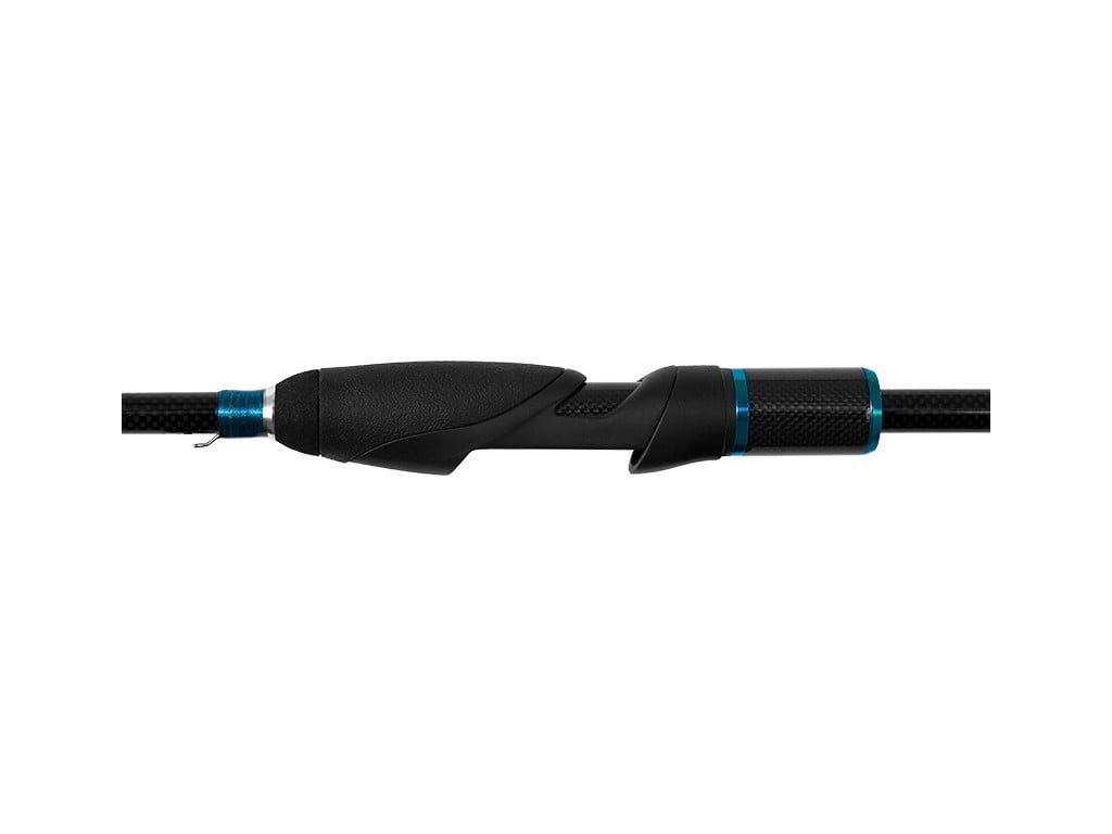 Pri stavbe tohto prútu sme použili netradičné sedlo navijaka, ktoré si vás však okamžite získa nebývalým komfortom. Blank je postavený z 30T uhlíka a po celej dĺžke je osadený vysokokvalitnými očkami značky Seaguide v zlatej edícii, ktoré sa výborne hodia k matnému čiernemu dizajnu s tyrkysovými detailami. Dĺžka 210 cm je priam ideálna do člna.