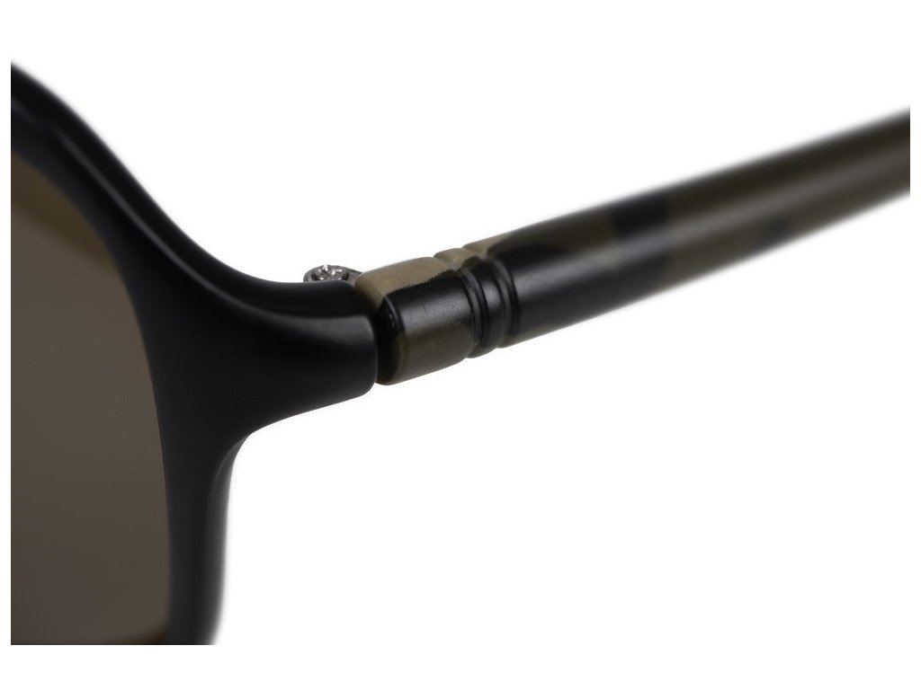 Fox Av8 Brown lense : Slnečné polarizačné okuliare v čiernej farbe a camo vzor na nožičkách.