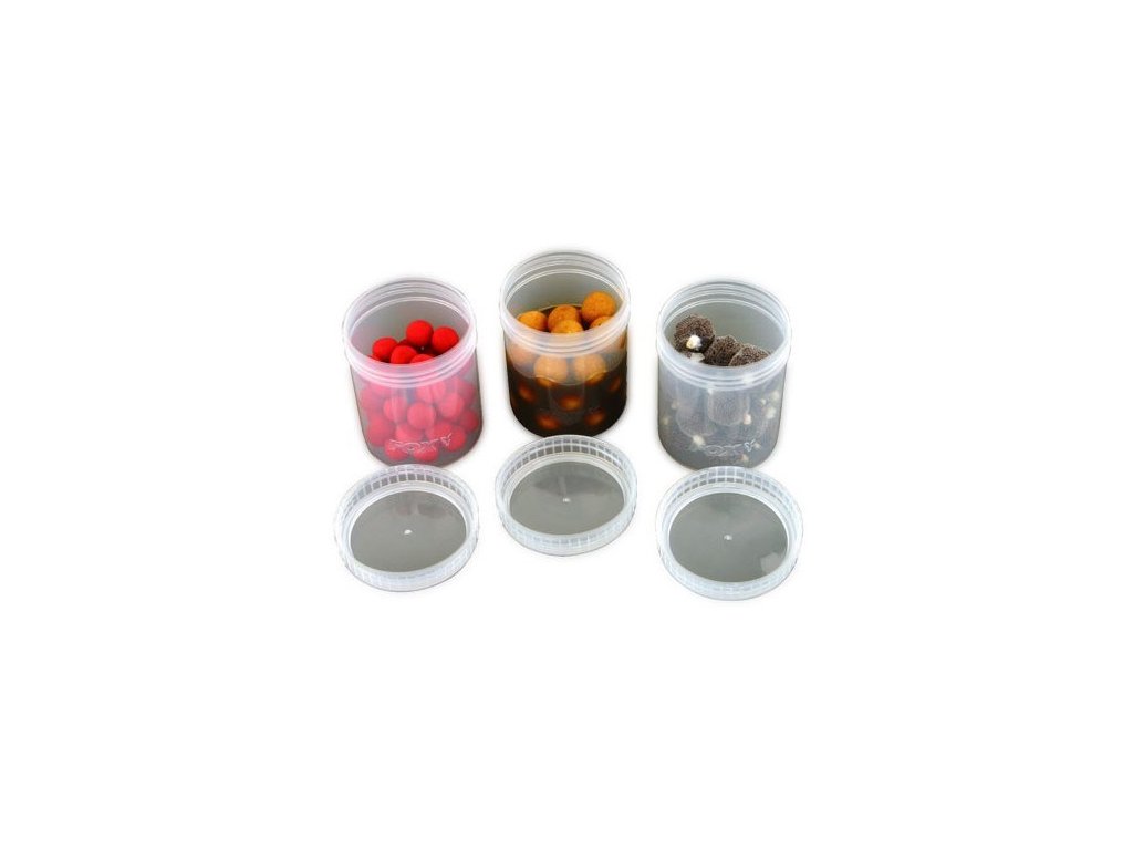 Fox Bait tubs full size clear x 6 : Kelímky pre bezpečné uloženie vašich návnad. Majú skrutkovacie, nepriepustné viečka s gumovým tesnením. Vaše nadipované návnady, gumové nástrahy atď teraz môžete prenášať bez strachu, že vám zašpiní tašku .