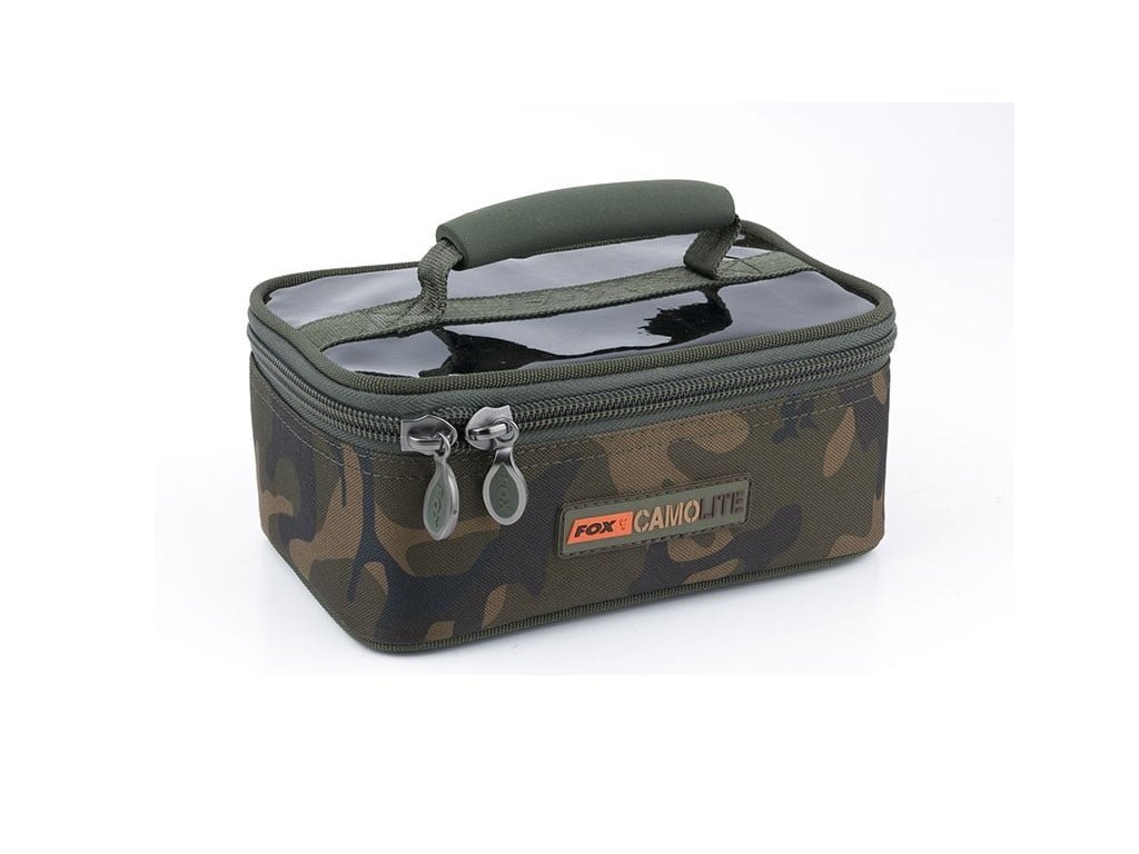 Fox Camolite Rigid lead and bits bag - Veľmi kvalitné puzdro na olova od firmy Fox. Puzdro je vyrobené v Camo verzii a má priehľadné veko. Taška na olova Camolite Lead and Bits bag.