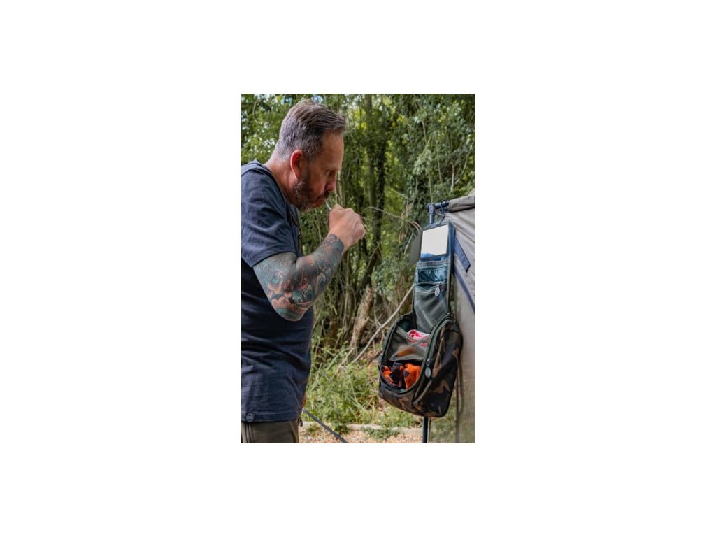 Taška slúži predovšetkým na zavesenie v bivaku alebo na inú závesnú plochu pričom po jej rozbalení máte všetky zbalené veci pekne pohromde. Vo vrchnej časti sa nachádza aj zrkadlo. Okrem vnútorných priečinkov má taška aj dve bočné vrecká a zadné vrecko na suchý zips.