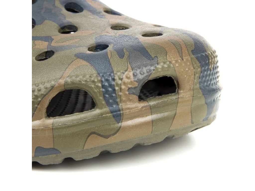 Fox Chunk Camo Clogs kroksy vyrobené z jedného kusa tvarovanej hmoty v unikátnom Fox Camo vzore.
